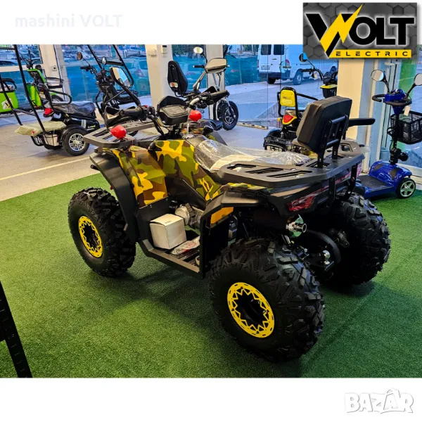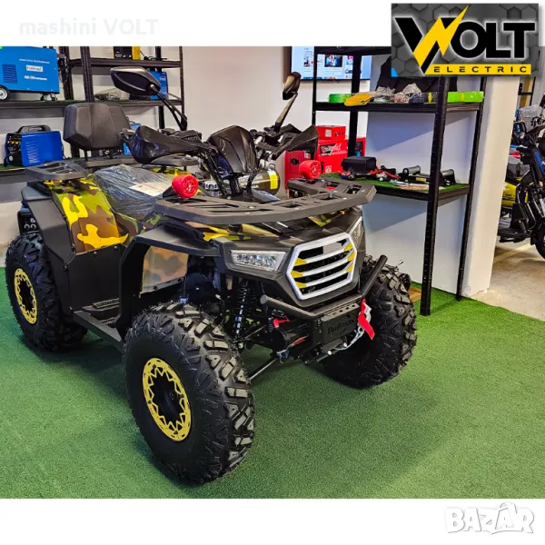 Нов модел бензиново АТВ със качествен дефорсиран 200 кубиков двигател и R-N-D автоматична скоростна кутия. Оборудван с хидравлични дискови спирачки, лебедка, теглич, пълна LED светлинна окомплектовка, сак, каска, преден LED бар. Развива над 75 км/ч. Екстри: голям светещ LCD дисплей с много показатели и сменяема подсветка, подгрев на ръкохватките, брояч за пробега, аларма, безконтактно запалване, аудио уредба, цял LED заден стоп и др.