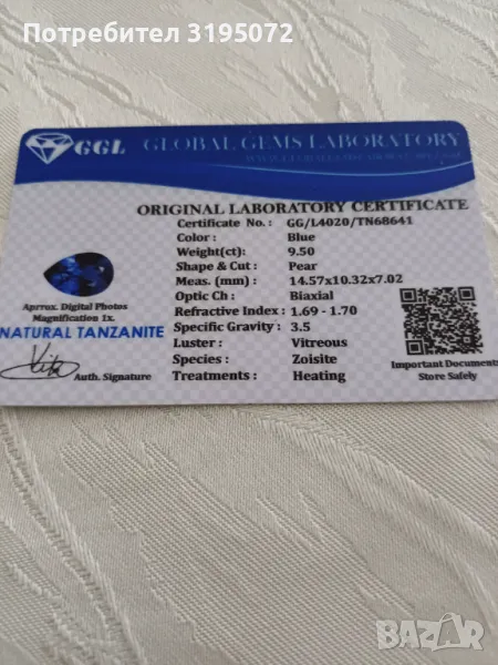 Продавам натурален танзанит 9,50кт → Обява 47067838