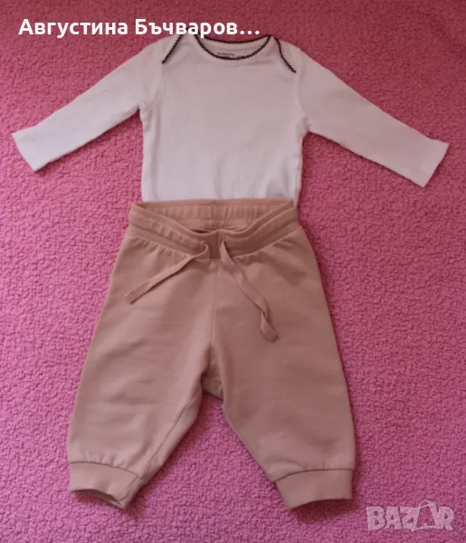 Комплект от 2 бр. долнище и 2 бр. боди с дълъг ръкав → Обява 47068743
