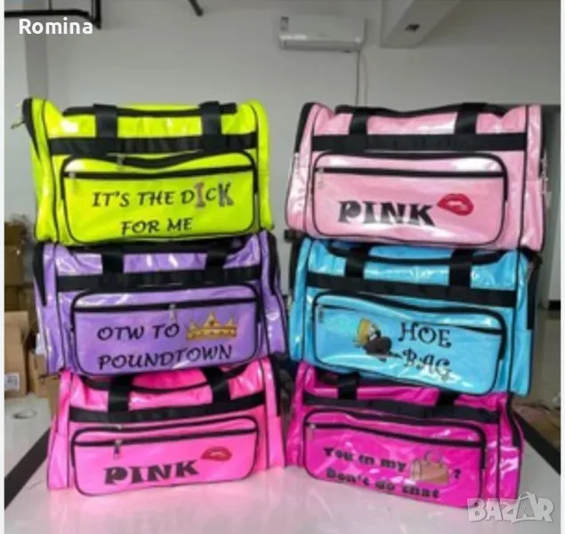 Дамски моден сак с блестящ лачен ефект!Модерна визия, красиви цветове, атрактивни надписи!