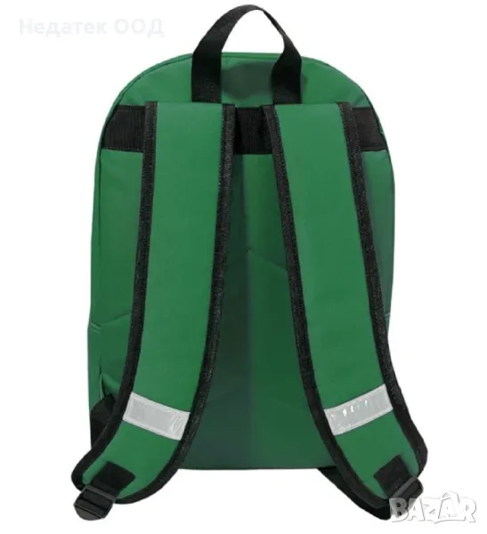 Ученическа раница в зелен цвят с бели релефни букви от серията Бенетон, с 2 места, голям преден джоб и черни ципове. Има анатомичен гръб, регулируеми презрамки със светлоотразители и дръжка. Идеален за ученици от началното училище и тийнейджъри.