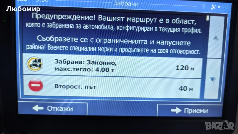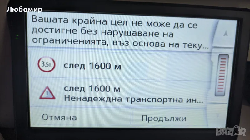 т.н. Така навигацията ще съобрази заложените параметри с маршрута и със
