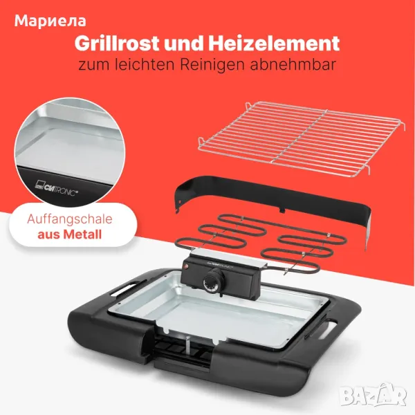 Clatronic Електрическо Барбекю / Електрическа Скара с Реотан 2000W