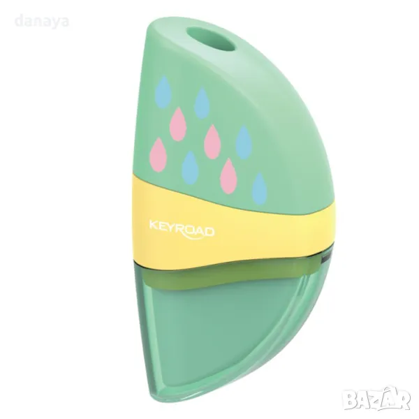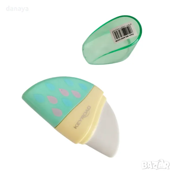 2 в 1 острилка с гумичка с нестандартна форма и пастелни цветове. От едната страна е острилка, а от другата гумичка. Незаменим ученически аксесоар за всеки ученик.