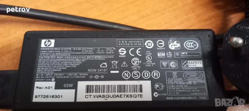 Зарядно за лаптоп на HP Probook и др., снимка 1 - Части за лаптопи - 47071092 Зарядно за лаптоп на HP Probook и др., снимка 2 - Части за лаптопи - 47071092 1/2
