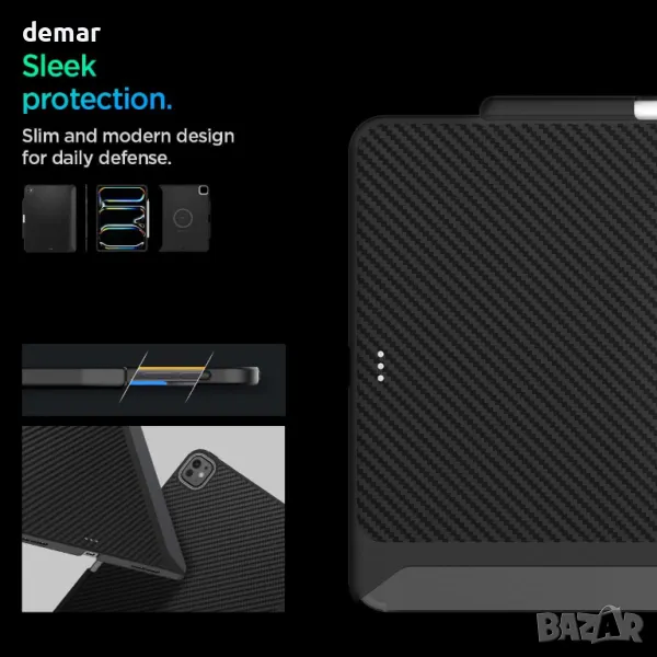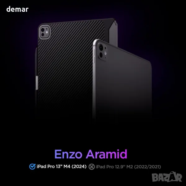 Този калъф е изключително съвместим с iPad Pro 13-инчов 7-мо поколение M4 (2024), а не с други модели iPad. Изработен е от материал Premium Kevlar 1500D, предлагащ изключителна защита и издръжливост. Калъфът разполага със силен, топлоустойчив магнит, който работи безпроблемно с магнитни стойки за таблети. Неговият въглероден дизайн от арамидни влакна добавя стилен и здрав външен вид, докато мекото покритие осигурява гладка текстура с ергономична ръкохватка против плъзгане, всичко това в тънък и елегантен профил.