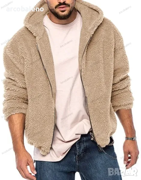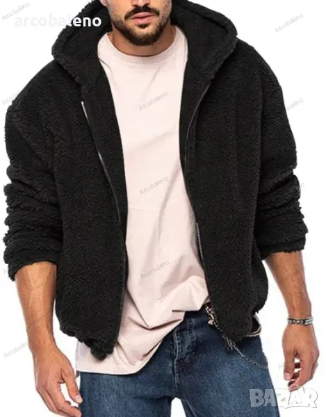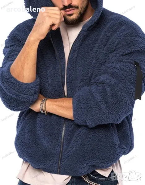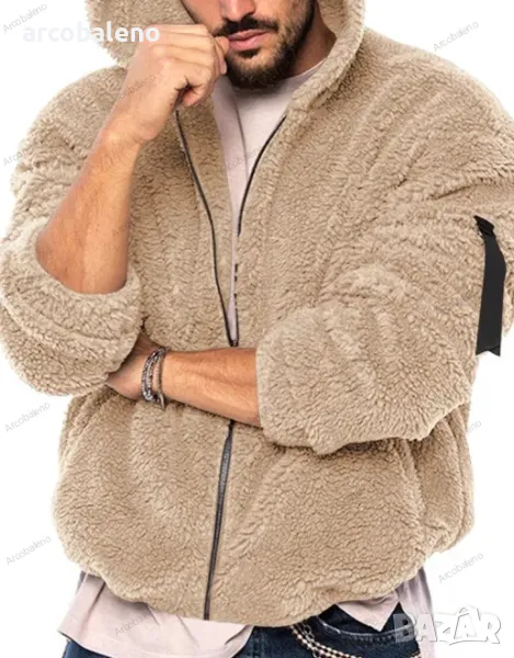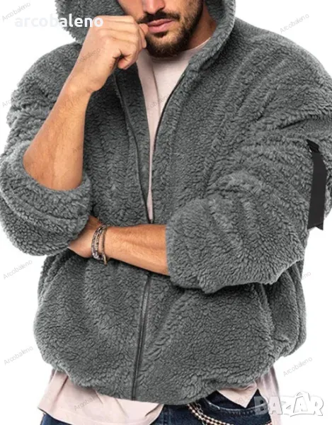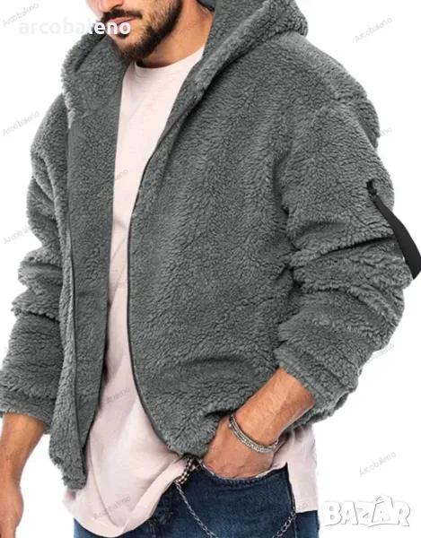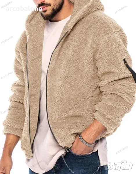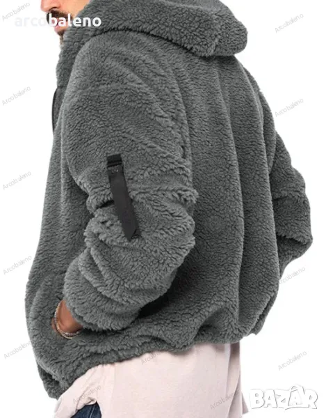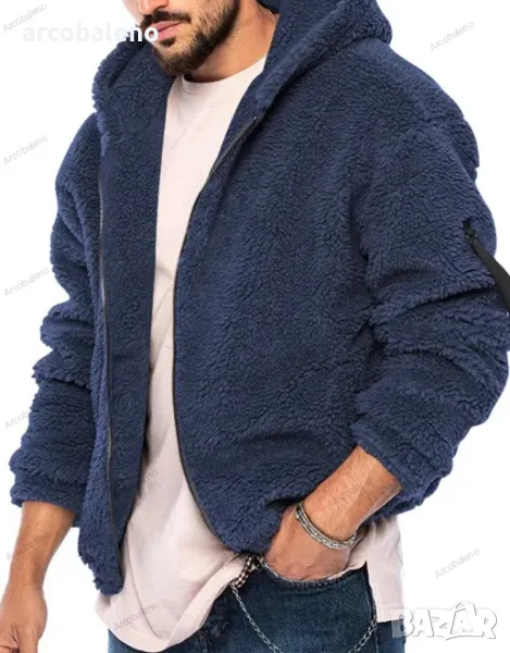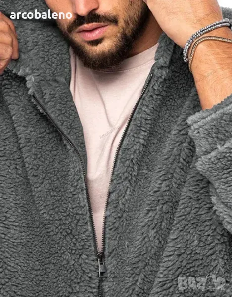 Двулицево мъжко яке с качулка от арктическо кадифе, топло яке с цип