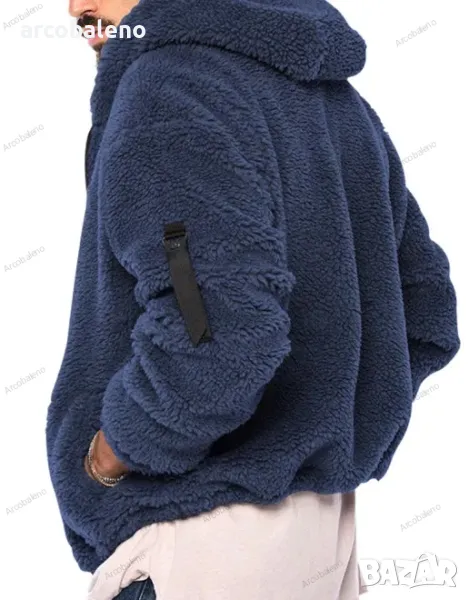 Двулицево мъжко яке с качулка от арктическо кадифе, топло яке с цип, 4цвята