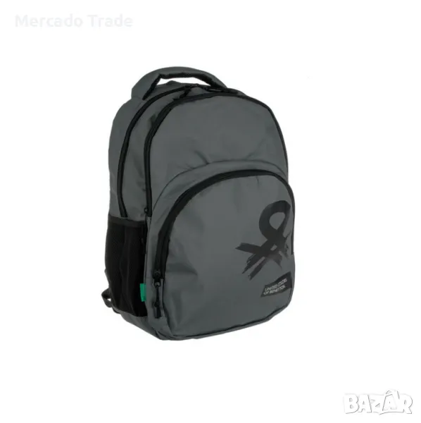 Ученическа раница Mercado Trade, Черно лого Benetton, Сиво