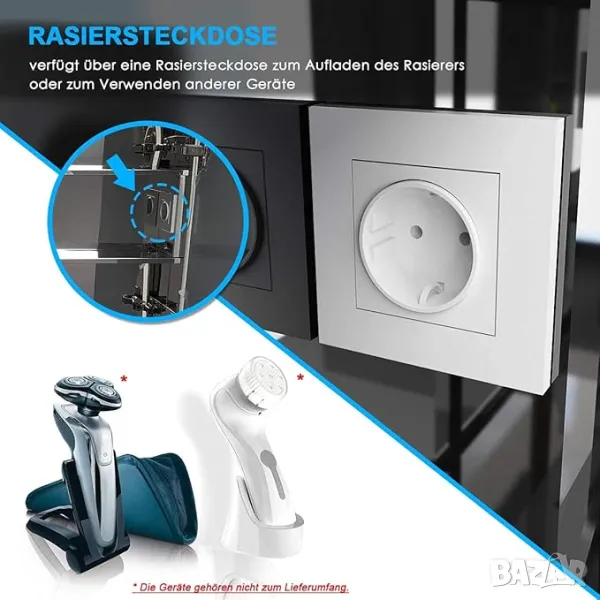 С 1 гнездо отвътре вдясно, светъл цвят: студено бяло (6400K+/-300k). Към шкафа за баня не може да се използва сешоар.