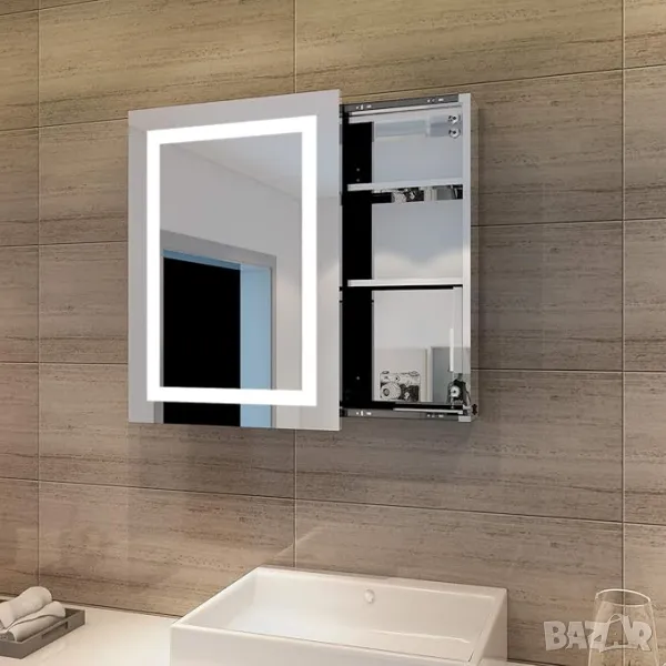 Шкаф лед LED-огледало, за баня гланц, шкаф за баня с осветление