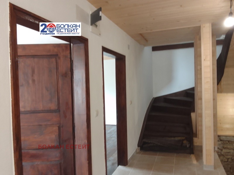 Реиновирана къща с двор в с. Радевци, обл. Габрово, за продажба! Къщата е с РЗП от 231 кв.м., разположена на три нива. На първо ниво се намира полувкопана каменна механа, която може да се обособи и като кухня- столова. На второ ниво са разположени просторно антре и две стаи с тоалетна. По вътрешно дъбово стълбище се излиза на трето ниво. Там са разположени просторно антре, три стаи и баня с тоалетна. Подовите настилки в къщата и вратите в нея са от масивно дърво във винтидж стил. Само на второ ниво коридора е изпълнен с гранитогрес. В имота са подменени ВиК и ел. инсталациите. Изградена е отоплителна система , като отоплението може да бъде на дърва, пелети или с термопомпа.Дограмата е PVC. На къщата са направени външна и вътрешна изолация, дренажна система. Дворът е с площ от 1500 кв.м., обграден с нова каменна ограда. Имотът се намира на асфалтов път с целогодишен достъп.