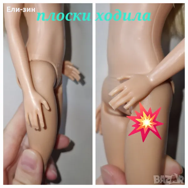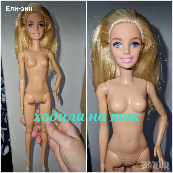 Написала съм на снимките къдети са голи "плоско ходило" и "на ток", защото това е разликата. Едната кукла е с високи обувки, а другата с кецове. По отделно с вързаната коса е 12лв, а другата с ниските обувки е 9лв. Като лот са 18лв.