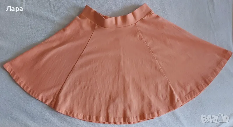 Къса пола в невероятно красив сьомгов цвят с висока талия.