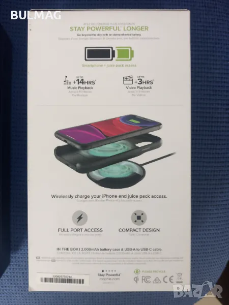 Кейс за (iPhone 11) Компактен Дизайн, Вграден (Pwer Bank) 3.8V 2000mAh 7,60Wh Безично зареждане