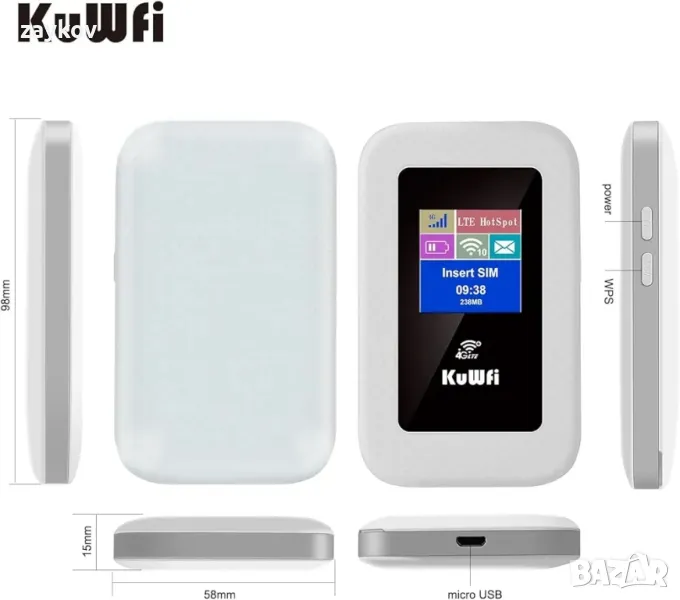 KuWFi 4G LTE 150Mbps Mobile WiFi, Plug and Play модем WiFi Hotspot 150 Mbps 4G FDD/TDD LTE