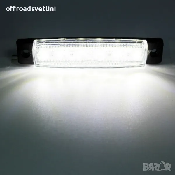 Светодиоден Маркер, габарит, токос, рибки, рибка, светлина със 6 LED ЛЕД за камион, бус, ван, ремарке, каравана, платформа 24V бял