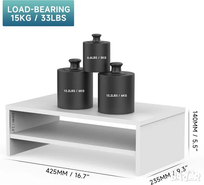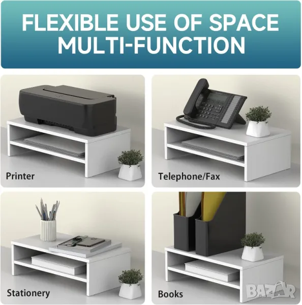 Многофункционален: Подходящ за екрани на вашия компютър и лаптоп, можете да поставите някои неща като книги, химикалки и т.н. във втория слой. Дръжте всичко под ръка, като същевременно си осигурите просторна и подредена работна зона.