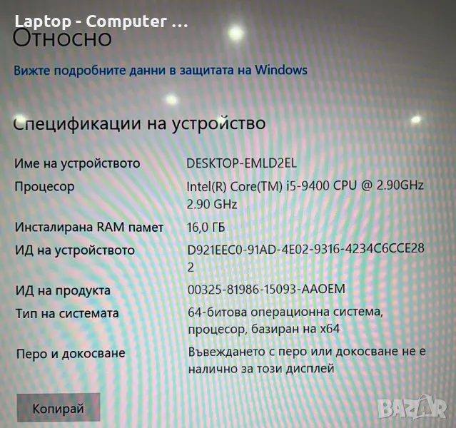 Процесор: Intel Core i5-9400 (6 x 2.90GHz 9MB Cache)