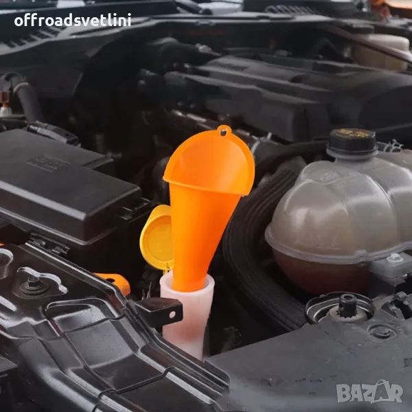 Тази фуния за масло е универсална и е подходяща за всякакъв тип двигателно масло. Изработена е от пластмаса. Ще ви помогне да предотвратите разливането на масло.