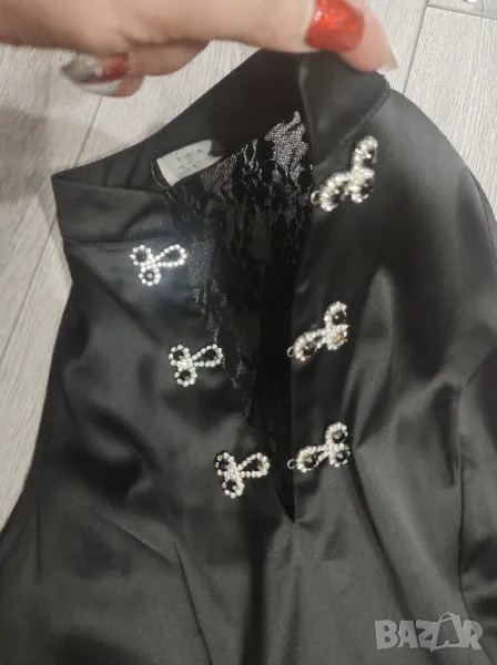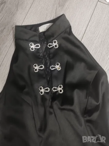 Страхотна черна рокля от еластичен сатен,което позволява да прилепне добре по тялото.