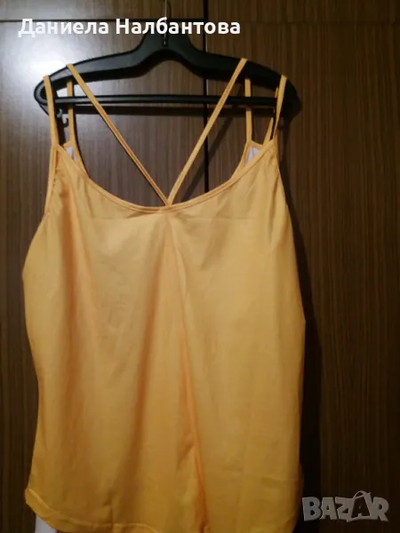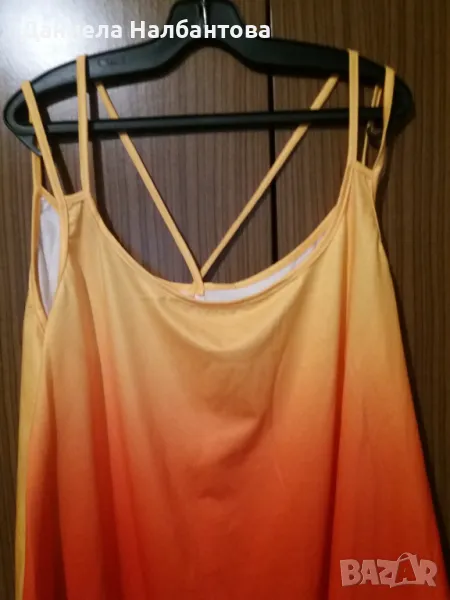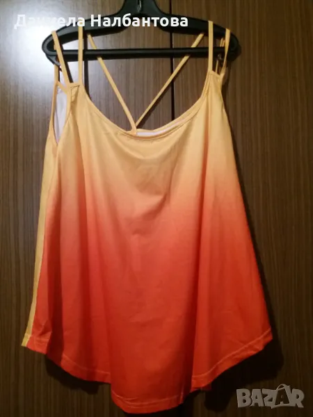 Потниче за макси дами, размер 3XL. НОВО! Материята е с голяма еластичност. Предната му част е в преливащи цветове, а гърба е едноцветен.