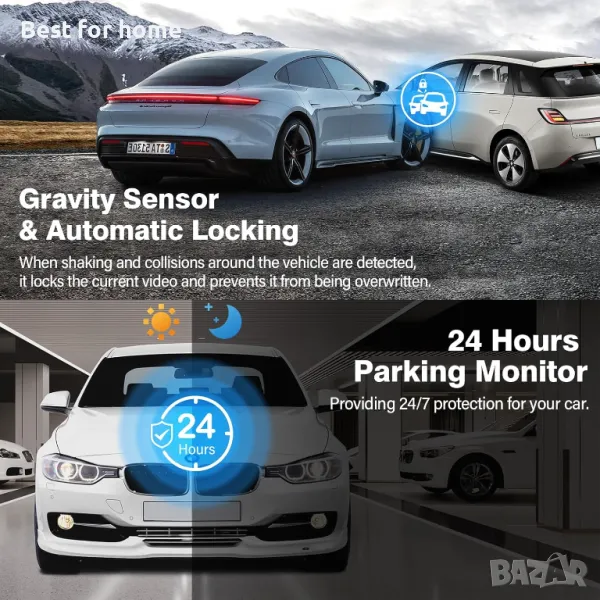 【24H монитор за паркиране】-Ако колата ви катастрофира, докато е паркирана, или някой се опита да открадне колата ви, видеорегистраторът автоматично ще се включи и ще започне да записва, когато открие вибрациите, осигурявайки 24-часова защита на вашия автомобил.