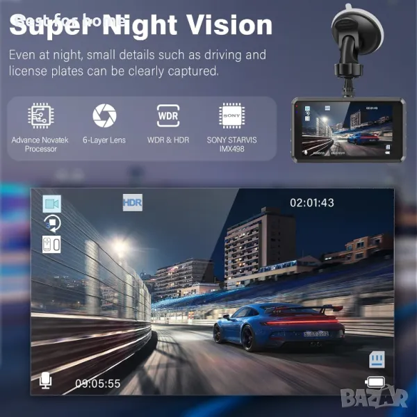 【По-ясно нощно виждане】 - Видеорегистраторът Miden разполага с бленда f1,5, HDR технология и най-големият в индустрията 1/2,7'' CMOS сензор за изображения за по-добра точност и яснота на цветовете. Независимо дали е ден или нощ, той може ясно да улови малки детайли като нощно шофиране и регистрационни номера. Тази камера за управление е идеална за споделени шофьори като Uber, Lyft и таксита.
