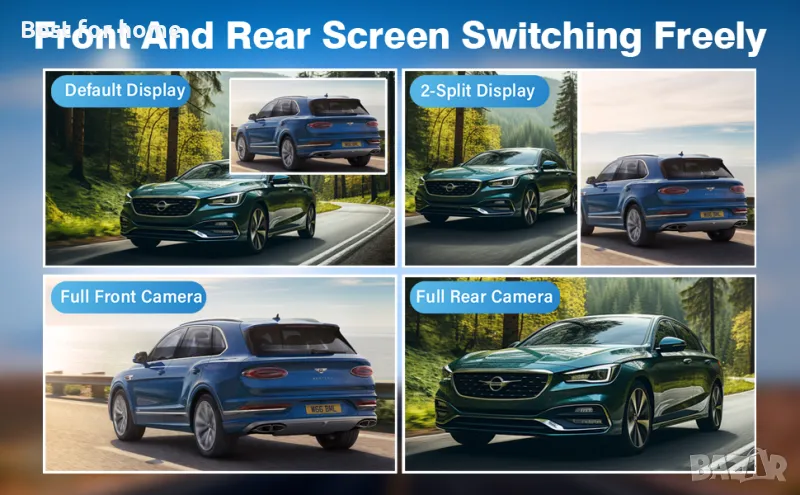 2K камера с двойно табло за автомобили, безплатна 64G SD карта, FHD 2K+1080P камера за управление отпред и отзад, 3.2'' IPS екран, 176° широкоъгълна камера за управление, 24H монитор за паркиране, G-сензор, Циклично записване, Нощно виждане, WDR