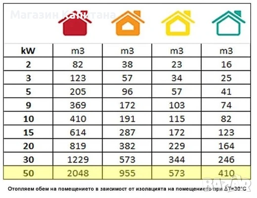 Отоплителен обем / 30ºC / (m3) 410 - 2048 m3