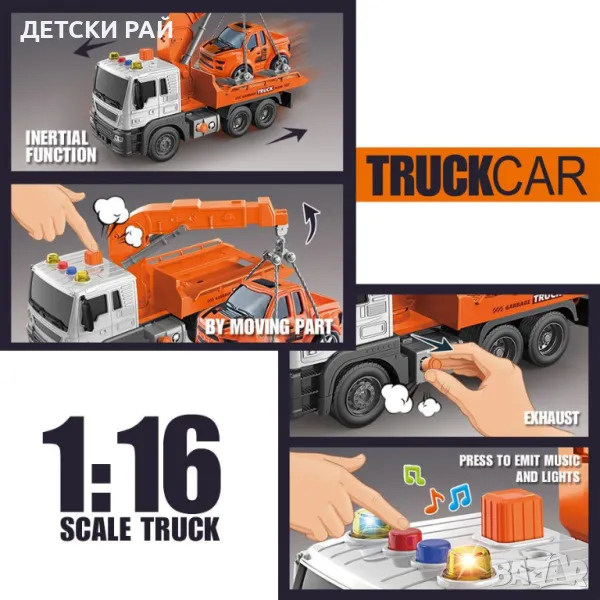 Камиона има музикални бутони,пневматичен бутон с който куката на репатрака повдига авариралата кола 2ри бутон за спускане на репатрираната кола.