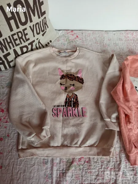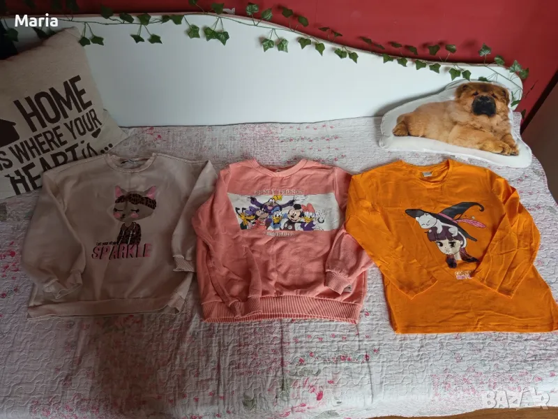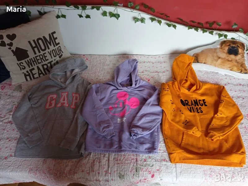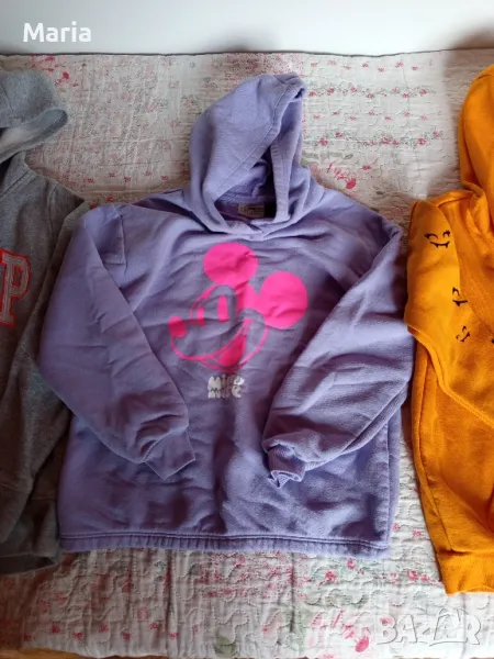 Блузите са запазени, нямат забележки. Размер до 140см. Оранжевата е продадена с качулката е продадена Цената е за всички.