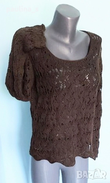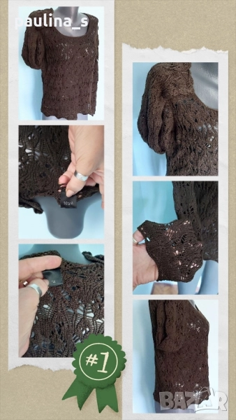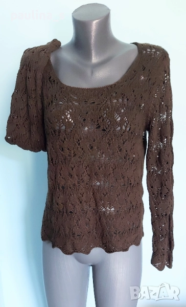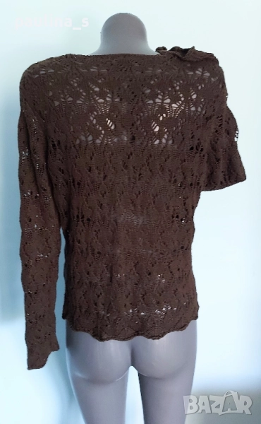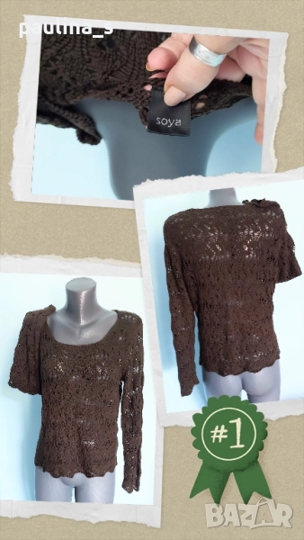 3️⃣. Колаж / L / 3XL - " Soya". Цената е крайна, без пазарлъци 29,99лв / 15 евро. Кафяв памучен пуловер, изплетен като дантела. Преждата е мека и приятна за допир до кожата, памук с примеси(премахнат етикет), има еластичност и покрива няколко размера - посочени са. Една бройка е, без дефекти и етикет.