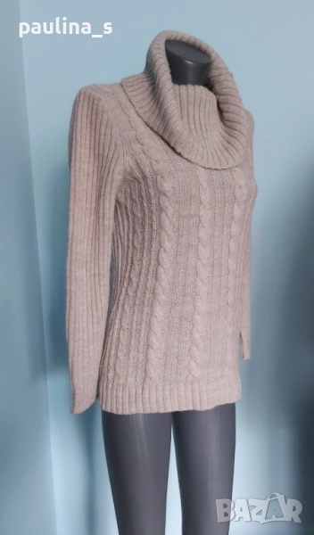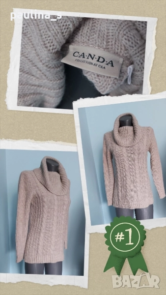 4️⃣. Колаж / M / 2XL - "CANDA". Цената е крайна 29,99лв / 15 евро. Топъл вълнен пуловер с плетеници и поло яка. Преждата е мека, плътна(със съдържание на вълна) и в неутрален цвят, подходящ за всичко. Без дефекти е, една бройка, става за посочените размери.