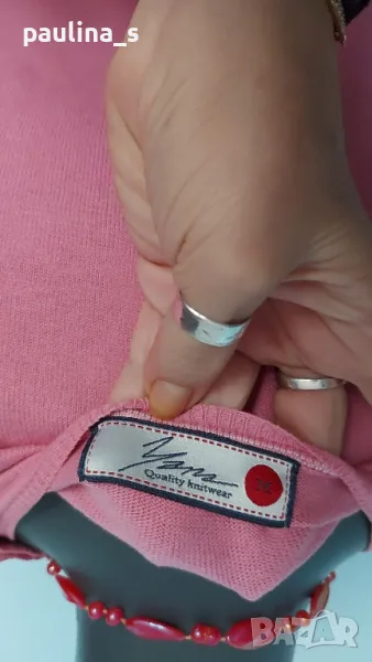 1️⃣. Колаж / L / 3XL - "Yana" quality knitwear. Цената е крайна 19,99лв / 10 евро. Розов памучен пуловер на "Яна" Плевен. Материята е памук и е много приятна за носене, цветът е нежно розов. Никога не е носен, изпран е само, без дефекти и етикет. По етикет е М, но плетивото дава възможност да се носи от няколко размера, посочени са. Една бройка е, без дефекти, нов. Герданът е с дължина 70см - цена 7,99лв / 4 евро и не се делят!