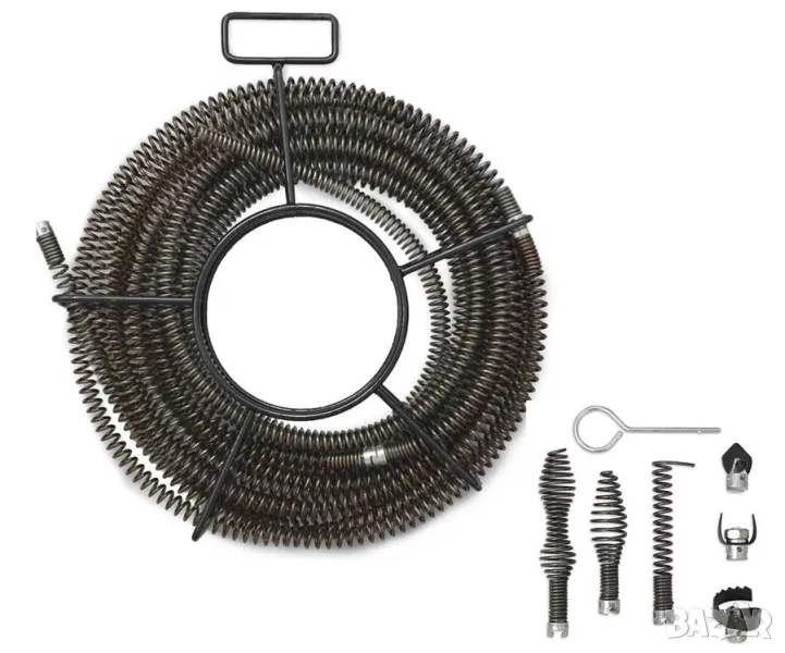 Продаваме Нова спирала/пружина за машина за отпушване на канали комплект 20 метра 16мм с 7 сменяеми глави