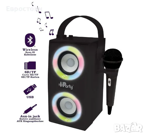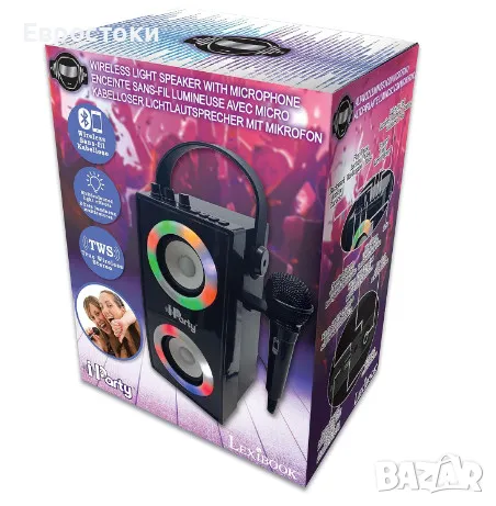 Преносима тонколона Lexibook iParty, Bluetooth високоговорител с микрофон, светлинни ефекти, караоке