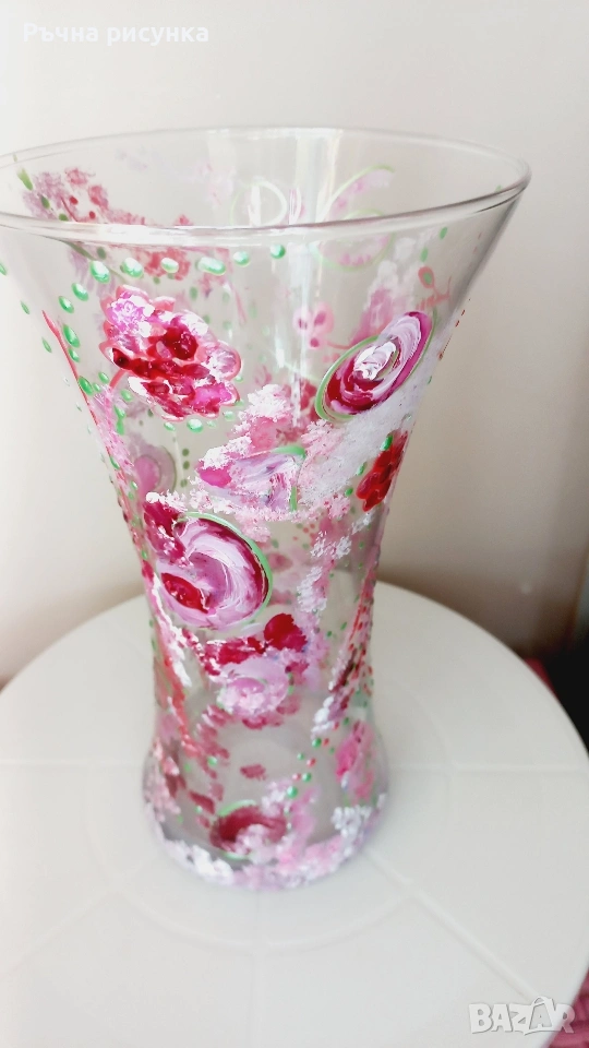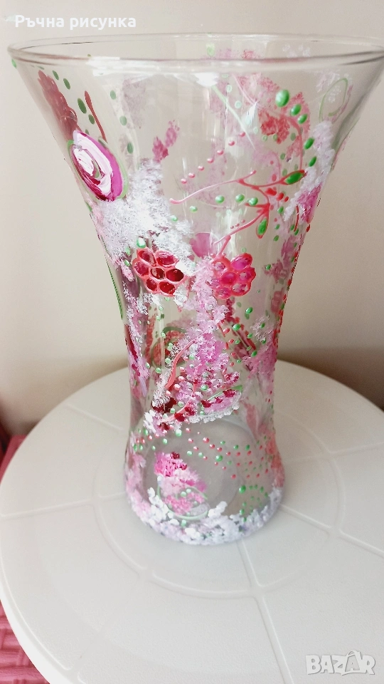 Големи ръчно рисувани стъклени вази с надпис по ваша идея → Обява 47083242