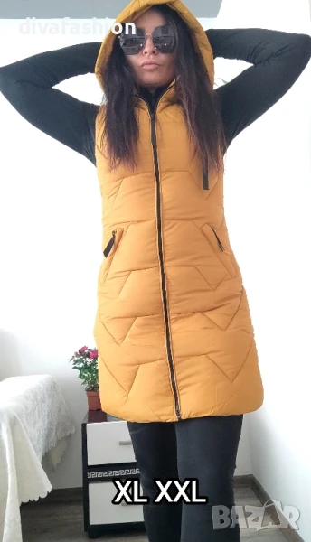 🛑Размери: L XL XXL. Черно- XL ✅L - 90см. гръдна 80см. дължина. ✅XL - 95см. гръдна 80см.дължина ✅XXL - 100см. гръдна 80см. дължина Елекът е с подвижна качулка и джобове с цип.40лв. Дамски дълъг елек - грейка с качулка черен..Дамски дълъг елек - грейка с качулка светло бежов. Дамски дълъг елек - грейка с качулка цвят горчица.Поръчай своят цвят! ✅Страхотен модел