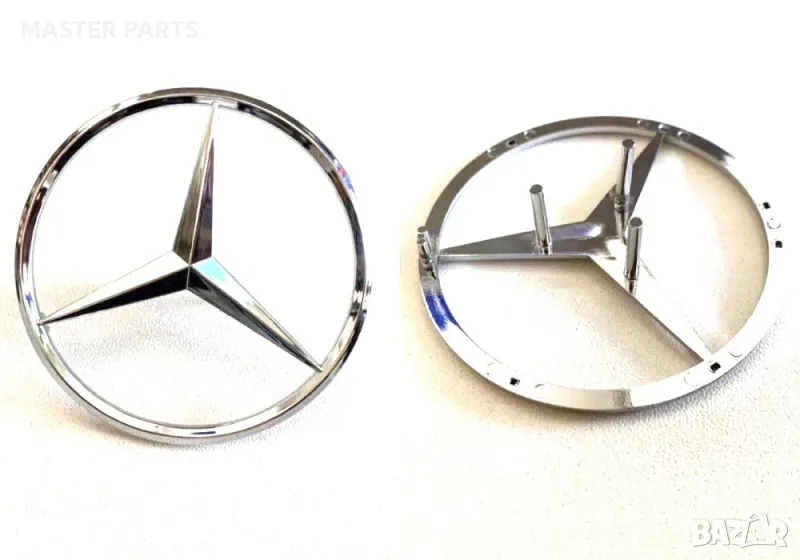 Емблемата Mерцедес , V6 , V8 за капака на двигателя на Mercedes-Benz моделите с бензинови двигатели M273 и M272 (както C, E, S, R, ML, GL, GLK и други )