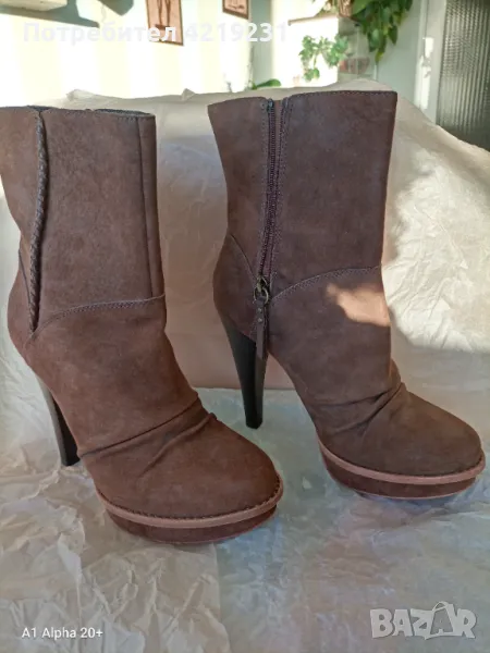 Оригинални кафяви боти от естесвена кожа на UGG. Отвън е естествен набук, отвътке е с агнешка кожа. Токът 12 см, изключително удобни.