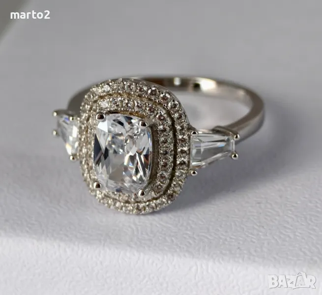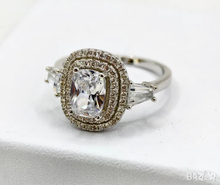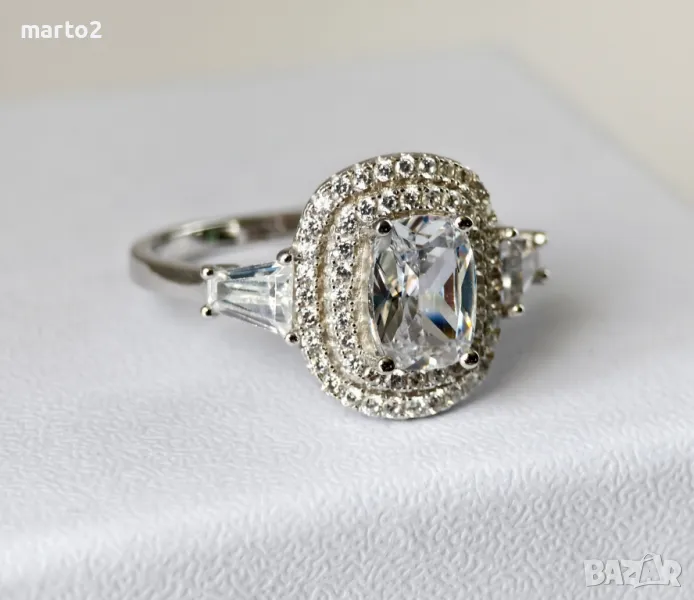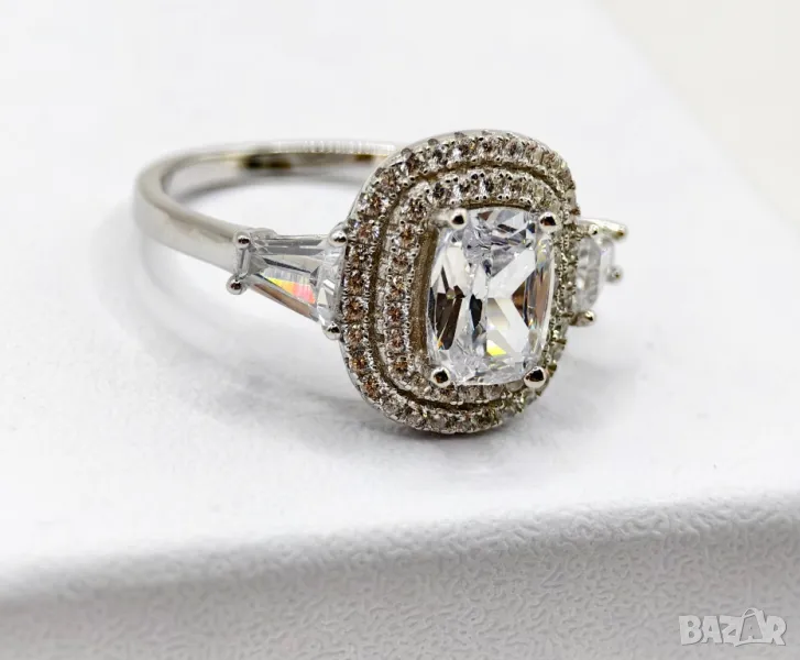 Прелестен Сребърен 925 Пръстен с Родиево покритие и камъни Циркони! → Обява 47085459