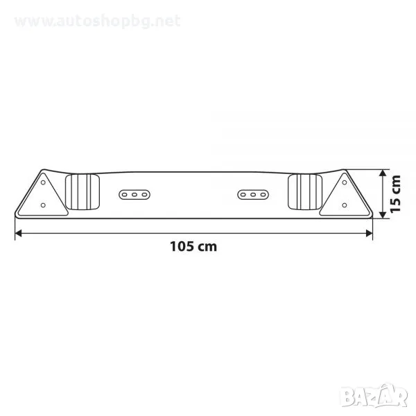 Оборудван със светлини, крушки, 4 м кабел, държач за регистрационния номер и 7-пинов щепсел.