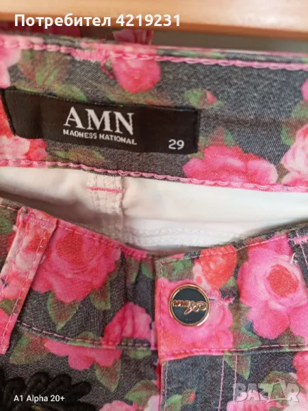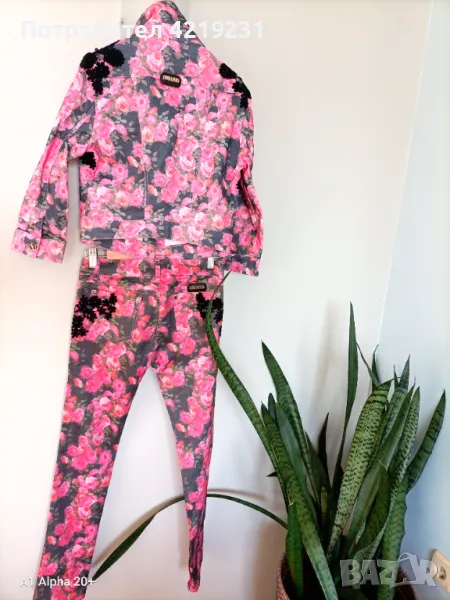 Елегантен слим дънков комплект A.M.N. Madness Nation с флорал мотив.