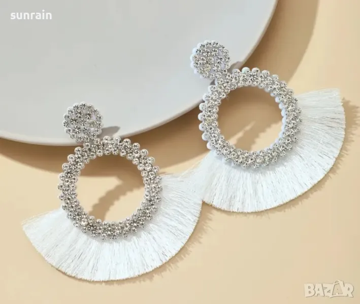 бели обеци тип ветрило → Обява 47087117