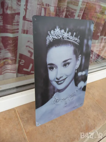 Метална табела филм Одри Хепбърн филмова икона корона красавица