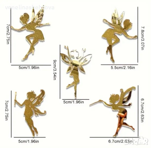 5 броя фея феи златисти акрилни топери за торта → Обява 47088777