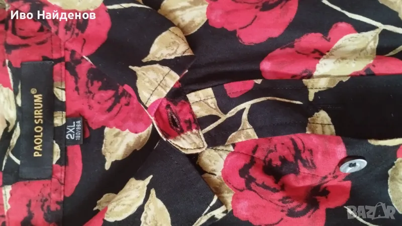 Мъжка риза, на цветя, с къси ръкави, Paolo Sirum, размер 2XL (става и за L). Носена е един- два пъти. Напълно здрава