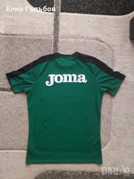 Фланелката няма номер и име на гърба , а там с големи букви е изписано името на фирмата за екипировка обличаща отбора - JOMA.