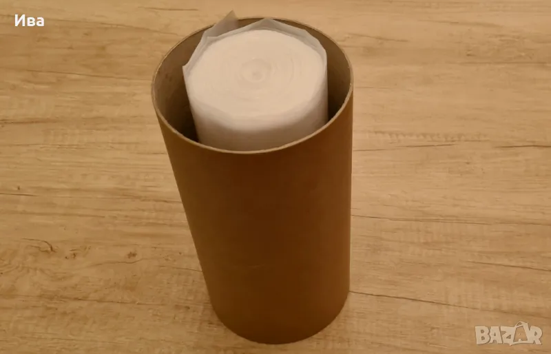-> Едно руло от 200 метра, бял цвят и картон, с който много лесно ще може да пълните касетите.